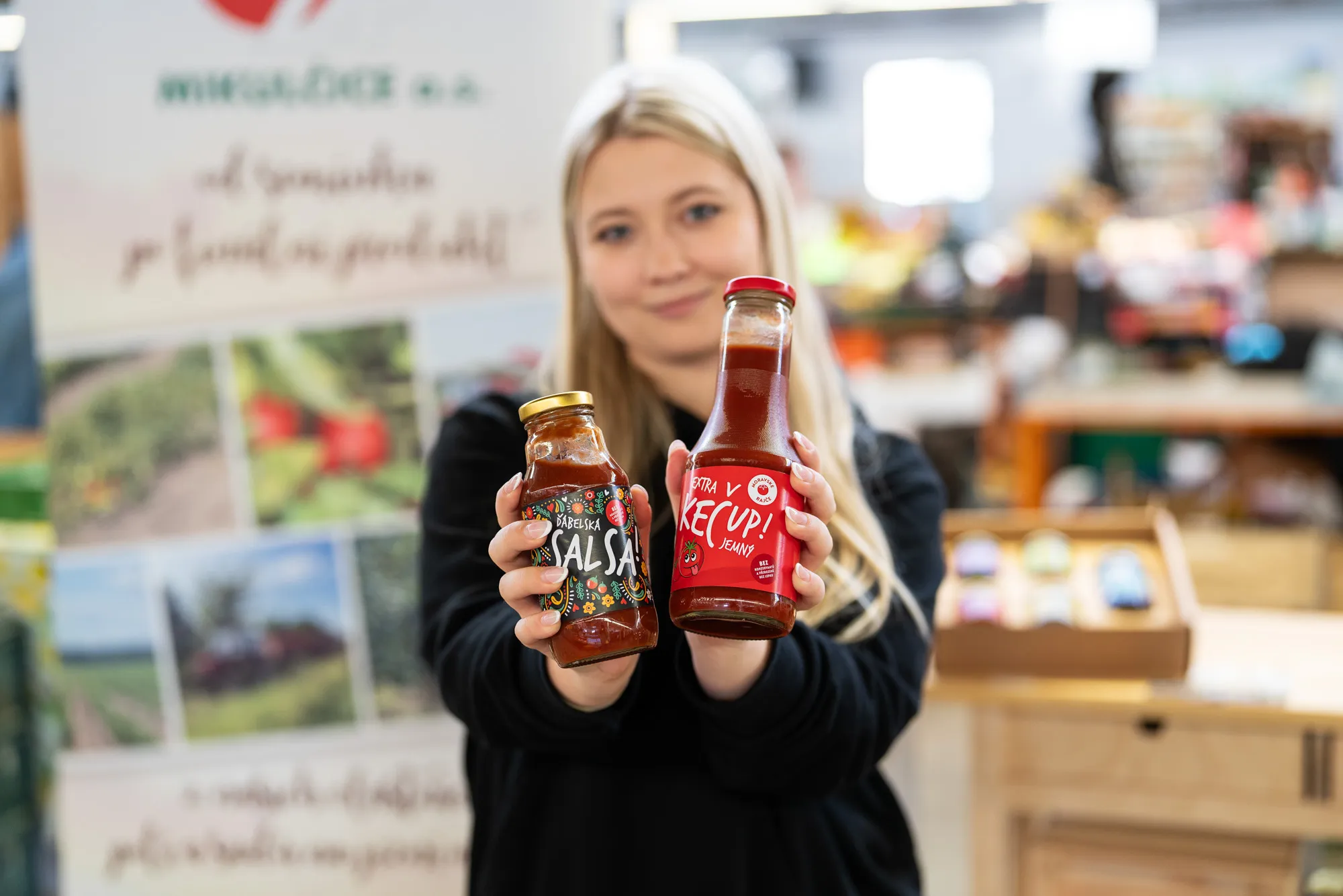 Domácí kečupy, salsy, omáčky i úroda z vlastní farmy na Moravě.