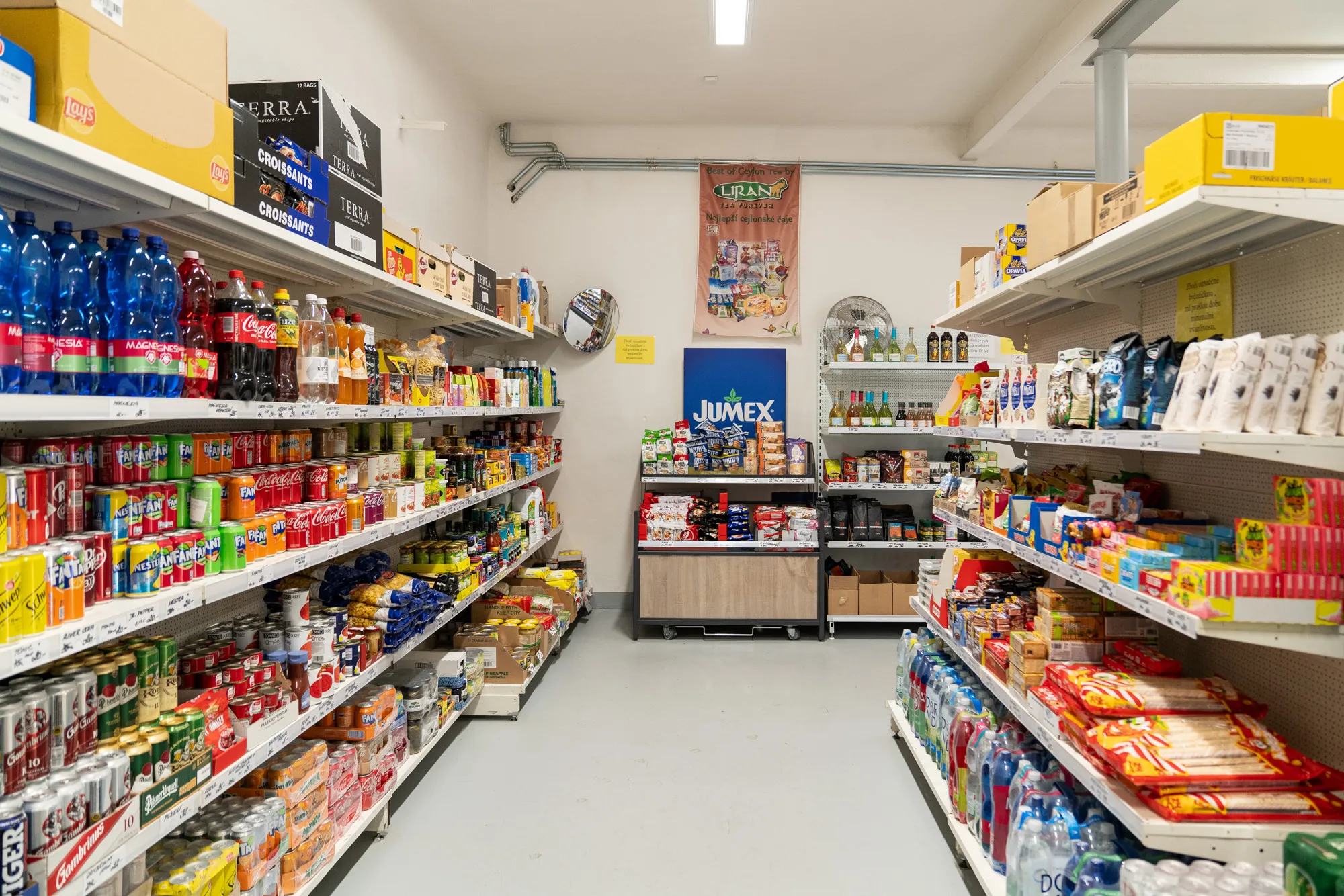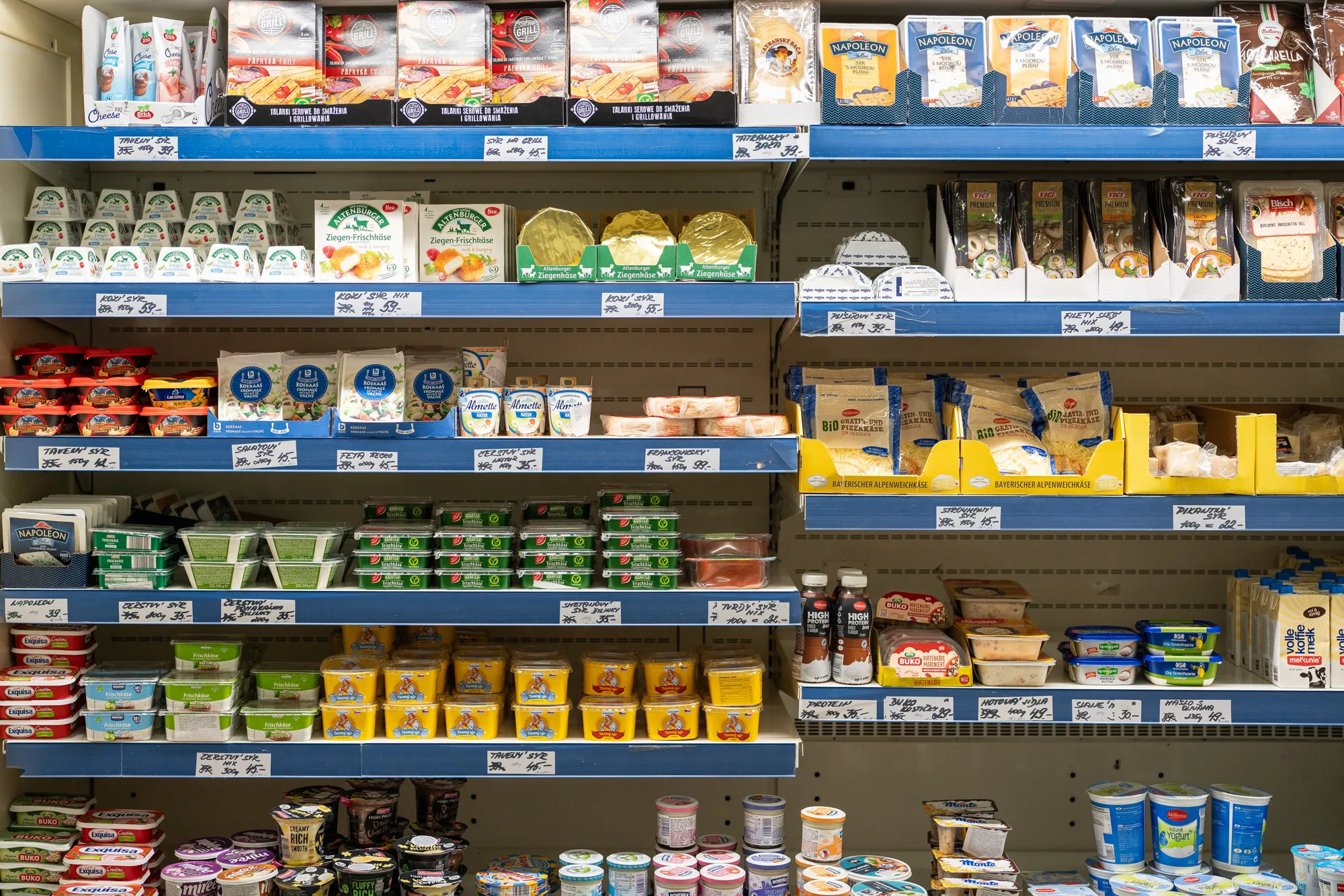 Levné potraviny, mléčné výrobky, uzeniny, cukrovinky a nápoje.