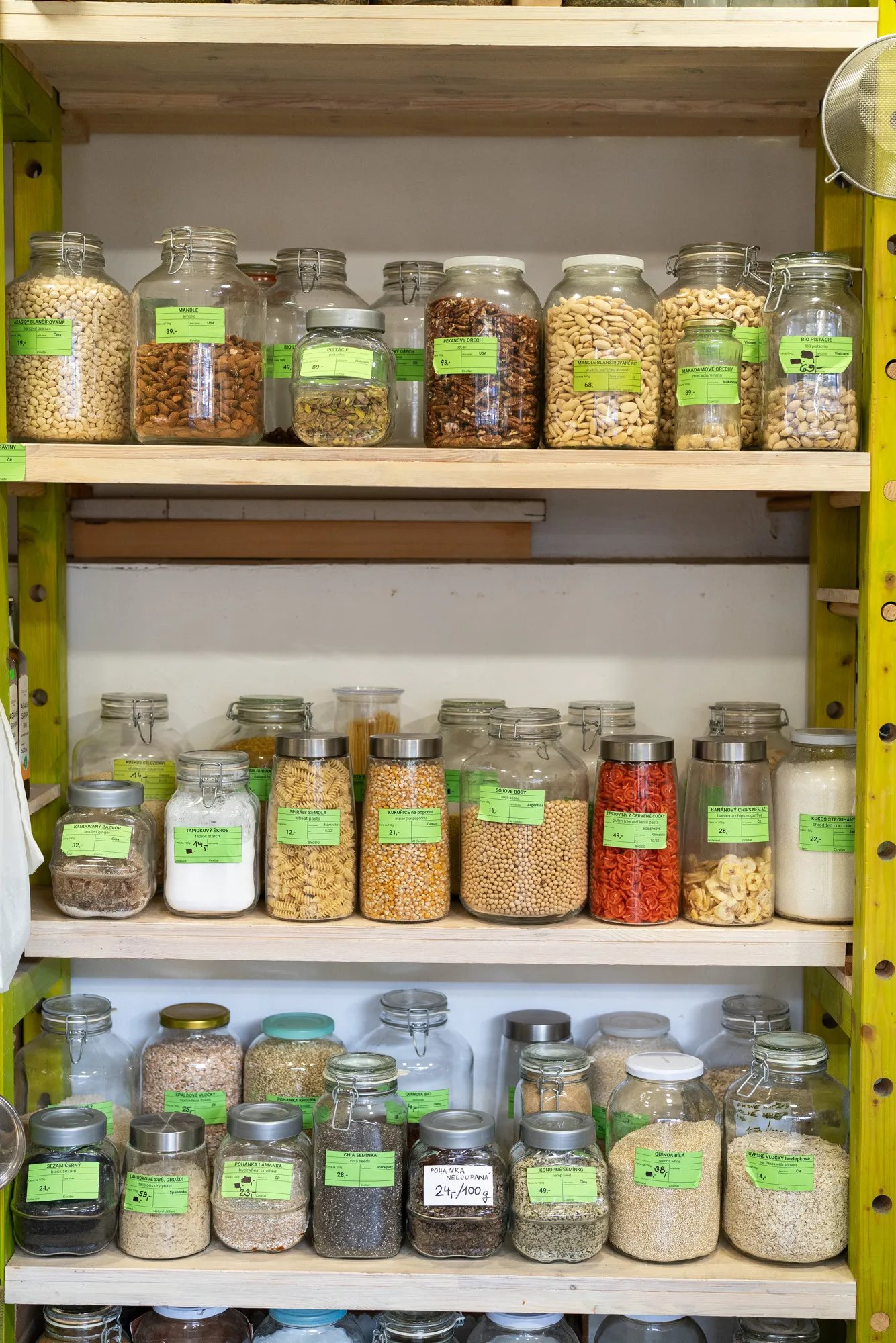 Bezobalový obchod s bio potravinami a drogerií bez chemie.