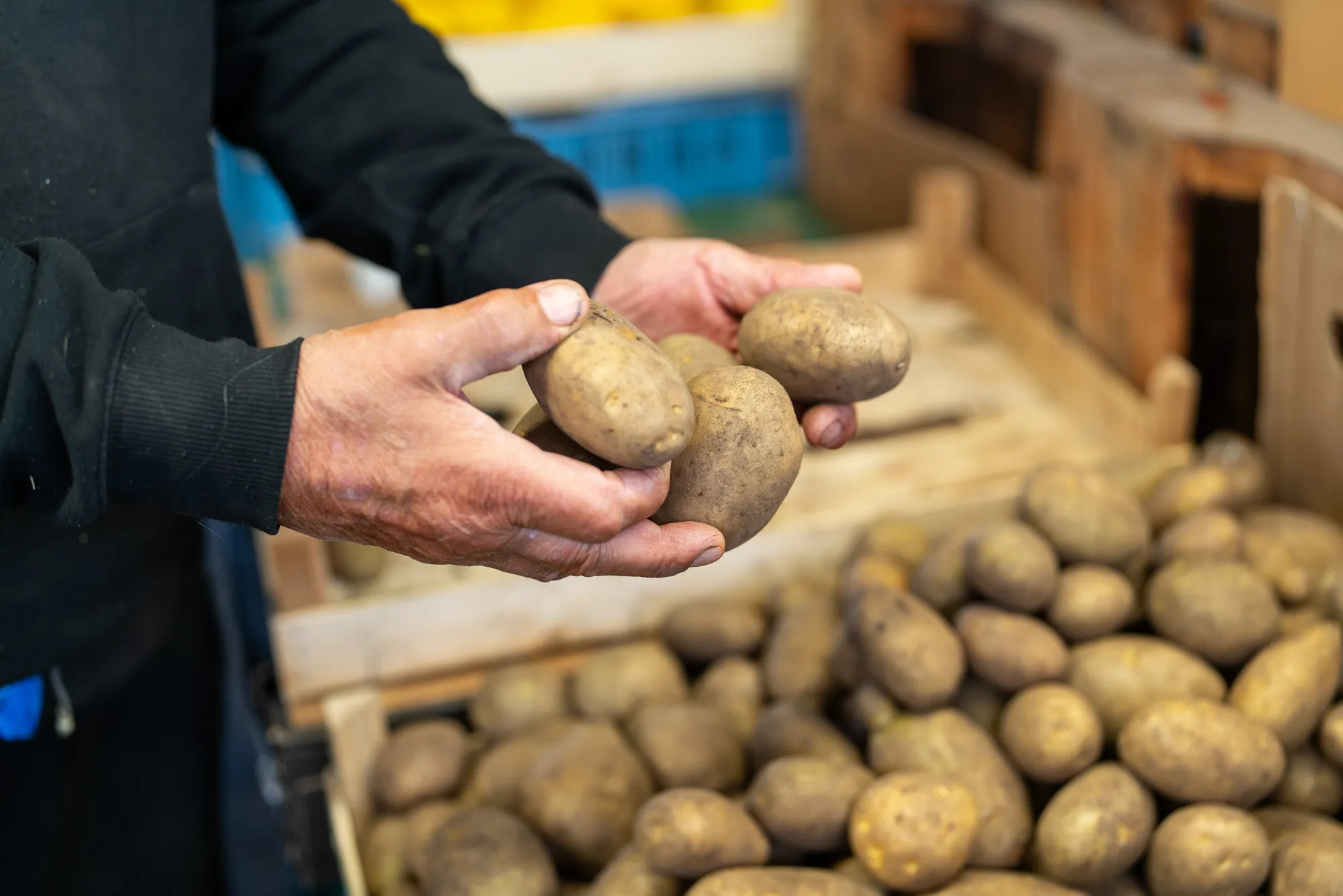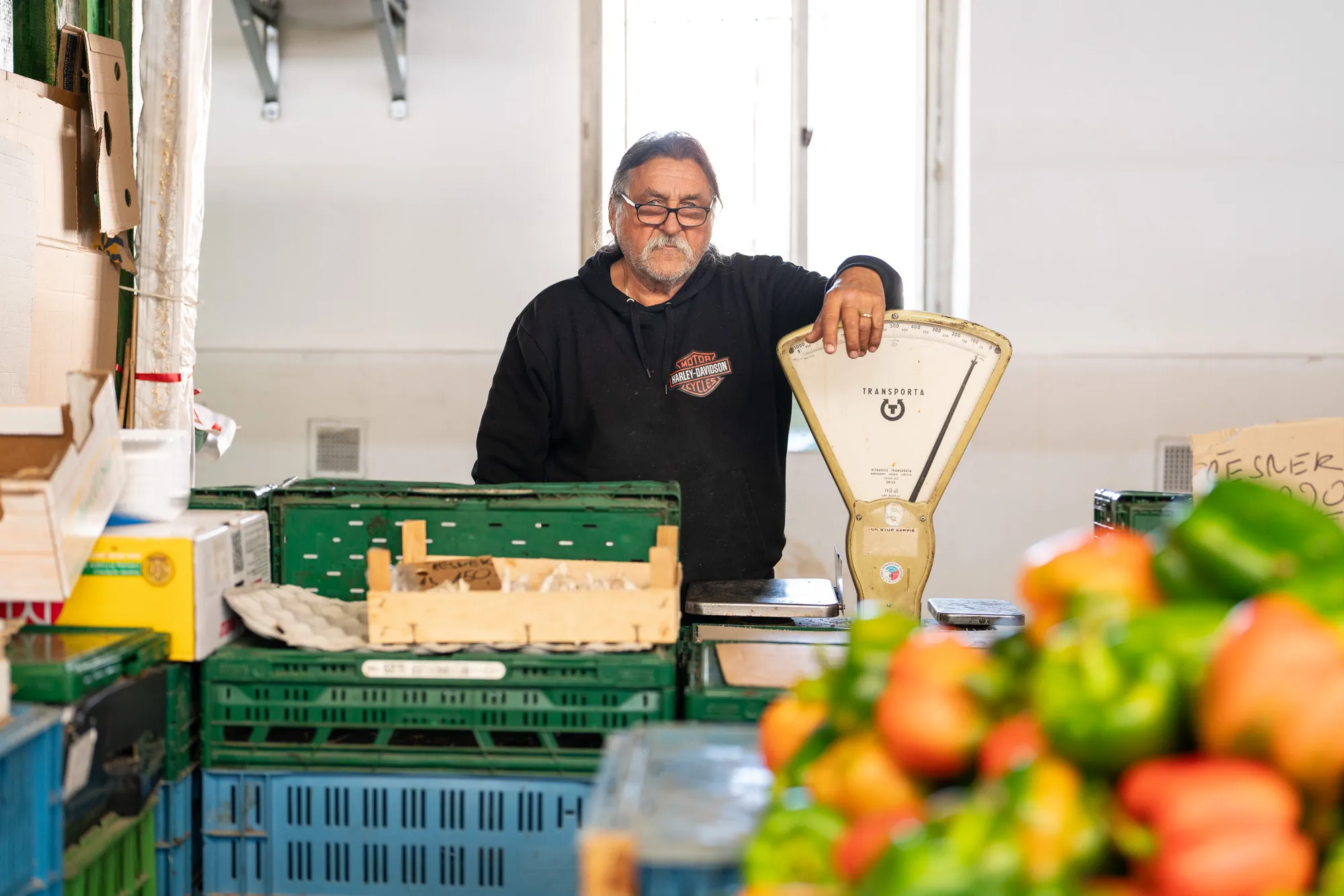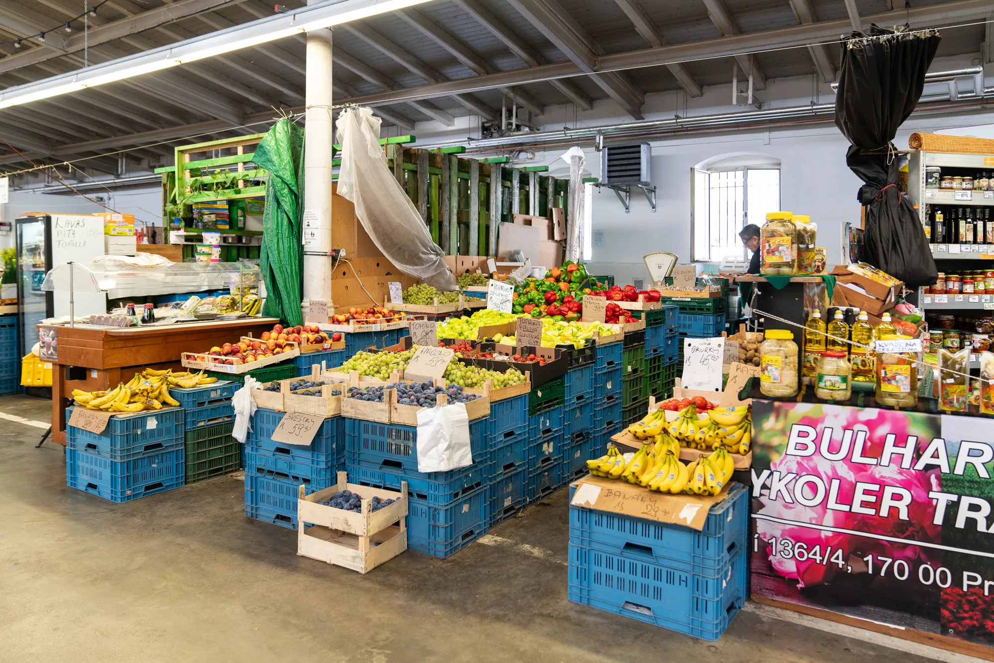 Ovoce a zelenina z dovozu i úroda dle sezony: švestky, brambory, papriky, rajčata.